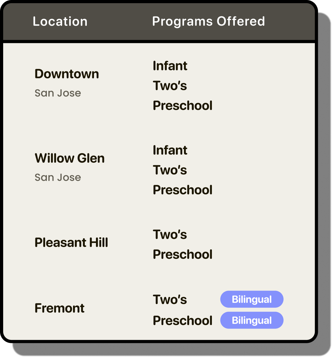 *We offer a bilingual (mandarin) twos program at Fremont.